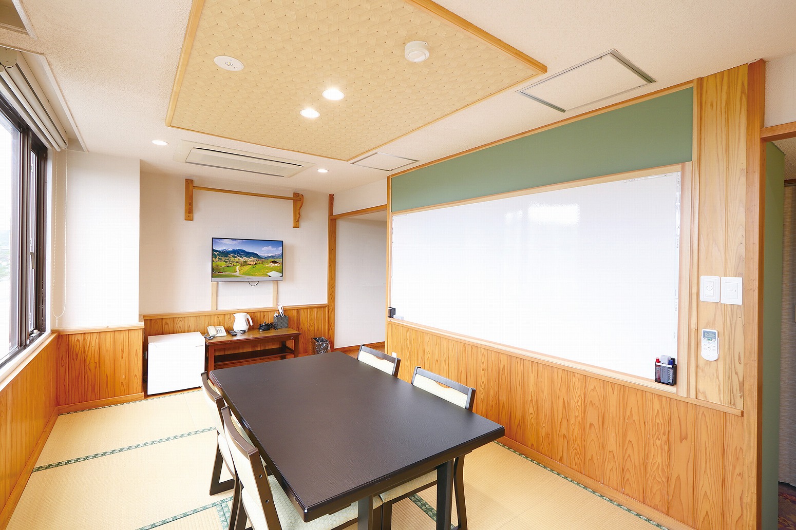 設備:テーブル、椅子、座布団、テレビ、冷蔵庫、ホワイトボード、各種充電器・ケーブル、冷暖房完備、★Wi-Fi完備